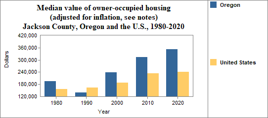 The real median value of owner occupied housing in Jackson County from 2017-2021. . .