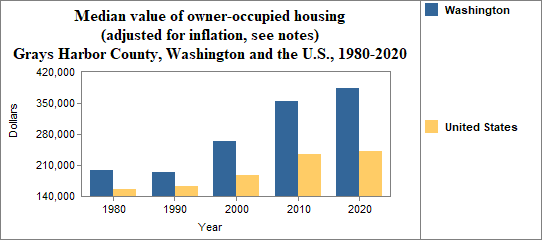 The real median value of owner occupied housing in Grays Harbor County from 2017-2021. . .