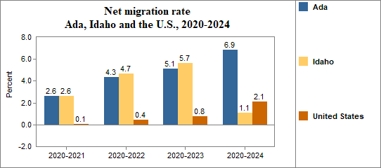 - Had a net migration rate of 2.6 percent compared to 2.6 percent for Idaho.