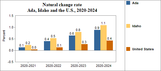 - Had a natural change rate of 0.1 percent compared to 0.2 percent for Idaho.