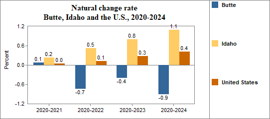 - Had a natural change rate of 0.1 percent compared to 0.2 percent for Idaho.