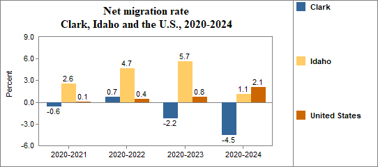 - Had a net migration rate of -0.6 percent compared to 2.6 percent for Idaho.