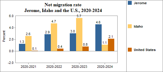 - Had a net migration rate of 1.3 percent compared to 2.6 percent for Idaho.