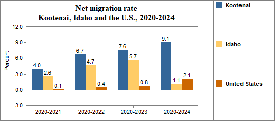 - Had a net migration rate of 4.0 percent compared to 2.6 percent for Idaho.