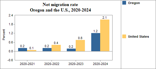 - Had a net migration rate of 0.2 percent compared to 0.1 percent for the U.S..