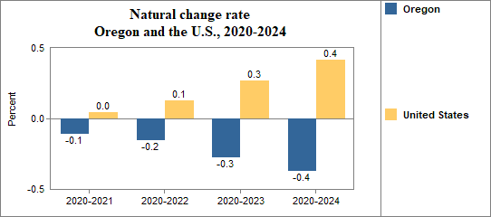- Had a natural change rate of -0.1 percent compared to 0.0 percent for the U.S..