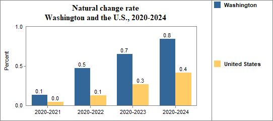 - Had a natural change rate of 0.1 percent compared to 0.0 percent for the U.S..