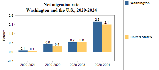 - Had a net migration rate of 0.1 percent compared to 0.1 percent for the U.S..