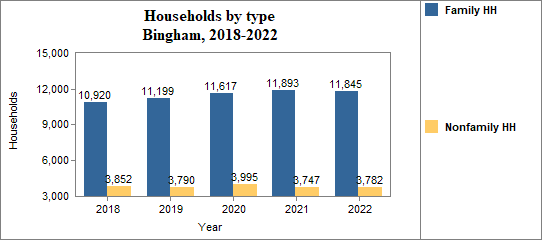 - Family households made up 75.8 percent of the total in 2018-2022, compared to 68.4 percent in Idaho.