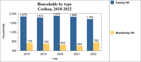 - Family households made up 69.8 percent of the total in 2018-2022, compared to 68.4 percent in Idaho.
