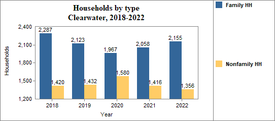 - Family households made up 61.4 percent of the total in 2018-2022, compared to 68.4 percent in Idaho.