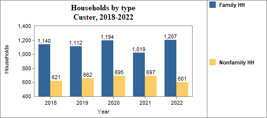- Family households made up 66.8 percent of the total in 2018-2022, compared to 68.4 percent in Idaho.