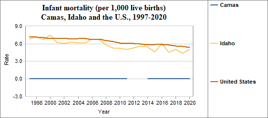 - The infant mortality rate was 0.0 per 1,000 in 2020, compared to 5.1 per 1,000 in Idaho