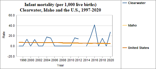 - The infant mortality rate was 27.4 per 1,000 in 2020, compared to 5.1 per 1,000 in Idaho