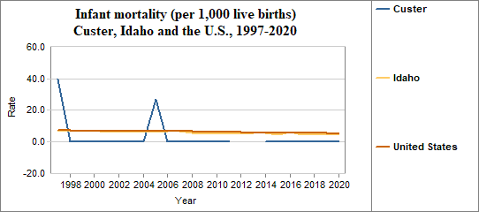 - The infant mortality rate was 0.0 per 1,000 in 2020, compared to 5.1 per 1,000 in Idaho