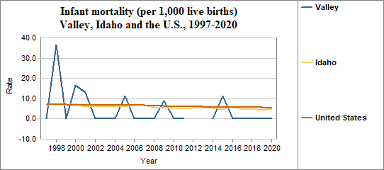- The infant mortality rate was 0.0 per 1,000 in 2020, compared to 5.1 per 1,000 in Idaho