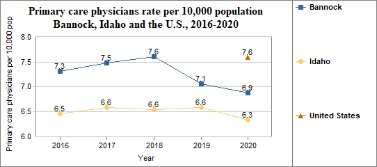 - There were 60 primary care physicians in Bannock compared to 62 in 2016.