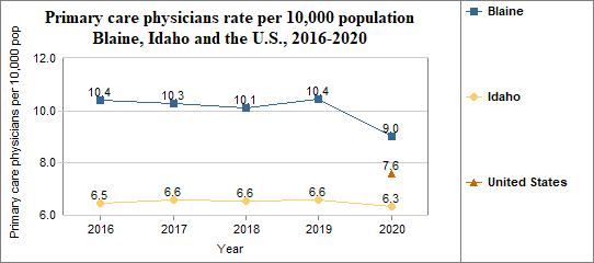 - There were 9.0 primary care physicians per 10,000 population, compared to 6.3 per 10,000 in Idaho