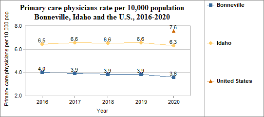 - There were 45 primary care physicians in Bonneville compared to 45 in 2016.