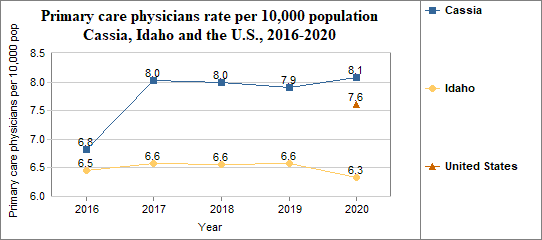 - There were 20 primary care physicians in Cassia compared to 16 in 2016.