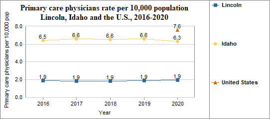 - There were 1.9 primary care physicians per 10,000 population, compared to 6.3 per 10,000 in Idaho
