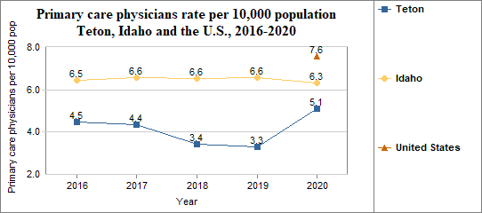 - There were 6 primary care physicians in Teton compared to 5 in 2016.