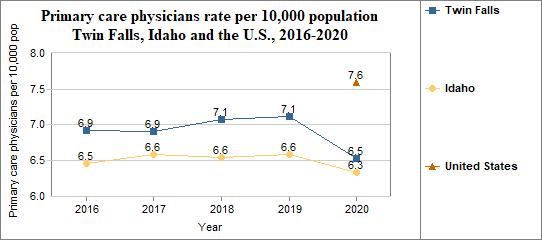 - There were 59 primary care physicians in Twin Falls compared to 58 in 2016.