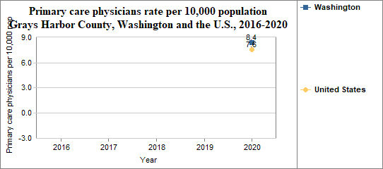 - There were NA primary care physicians in Grays Harbor County compared to NA in 2016.
