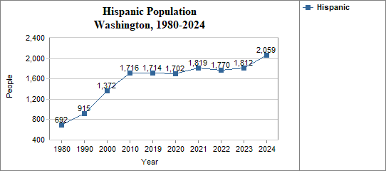 - The proportion of Hispanic residents has changed in Washington from 7.9 percent in 1980, to 10.7 percent in 1990, to 13.8 percent in 2000, and to 17.8 percent in 2024.