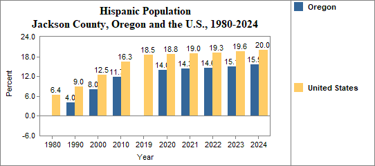 - Hispanic residents made up NA percent of the population in 1900, compared to NA percent in Oregon.