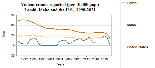 - The rate in 2021 was 0 per 10,000 population, compared to 20 per 10,000 in Idaho.