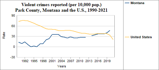 This indicator is calculated by dividing the number of reported incidences of violent crimes by the population. We multiply the result by 10,000. Violent crimes include murders and non-negligent manslaughter, rape, robbery, and aggravated assault. In counties with relatively few people, a small change in the number of violent crimes reported may have a significant effect on rates from year to year. (See the note about data comparability below.)