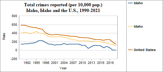 - The rate in 2021 was 0 per 10,000 population, compared to 107 in Idaho