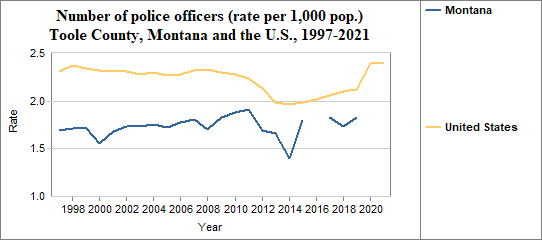 - There were NA police officers per 1,000 people in 1900, compared to NA in Montana.