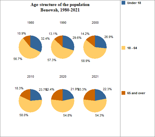 - 23.3 percent of the population was 65 or older in 2021, compared to 16.6 percent in Idaho