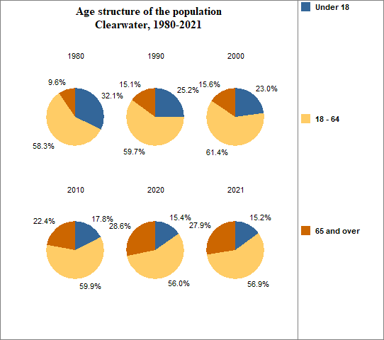 - 27.9 percent of the population was 65 or older in 2021, compared to 16.6 percent in Idaho