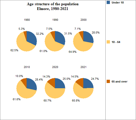 - 14.5 percent of the population was 65 or older in 2021, compared to 16.6 percent in Idaho