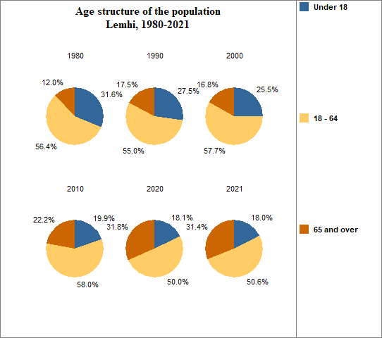 - 31.4 percent of the population was 65 or older in 2021, compared to 16.6 percent in Idaho