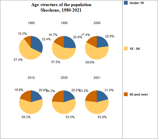 - 23.2 percent of the population was 65 or older in 2021, compared to 16.6 percent in Idaho
