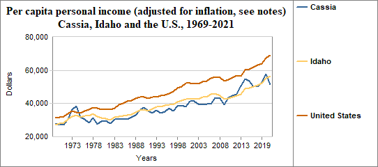 Cassia's per capita income, adjusted for inflation...