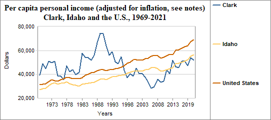 Clark's per capita income, adjusted for inflation...