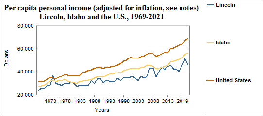 Lincoln's per capita income, adjusted for inflation...