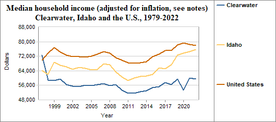 Median household income is the level of income at which half the population has lower incomes and half has higher incomes. Here, we provide information on real median household income, which means the data have been adjusted for inflation. In Clearwater median household income (adjusted for inflation) . . .
