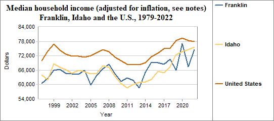 Median household income is the level of income at which half the population has lower incomes and half has higher incomes. Here, we provide information on real median household income, which means the data have been adjusted for inflation. In Franklin median household income (adjusted for inflation) . . .