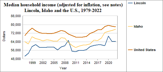 Median household income is the level of income at which half the population has lower incomes and half has higher incomes. Here, we provide information on real median household income, which means the data have been adjusted for inflation. In Lincoln median household income (adjusted for inflation) . . .