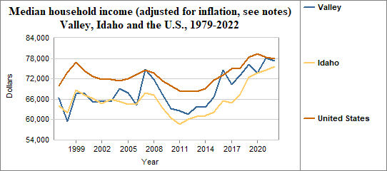 Median household income is the level of income at which half the population has lower incomes and half has higher incomes. Here, we provide information on real median household income, which means the data have been adjusted for inflation. In Valley median household income (adjusted for inflation) . . .