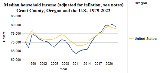 Median household income is the level of income at which half the population has lower incomes and half has higher incomes. Here, we provide information on real median household income, which means the data have been adjusted for inflation. In Grant County median household income (adjusted for inflation) . . .