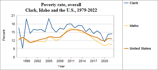 The poverty rate is the percentage of people living below the poverty level or “threshold.” Each year, the U.S. Office of Management and Budget establishes a series of poverty thresholds for different family sizes and ages of household heads. Among Clark residents, the overall poverty rate . . .