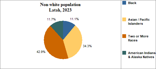 Please note that these numbers cannot be compared to Census race data from 1980, 1990, 2000, 2010 because these 2023 estimates do not include an "Other Races" category.