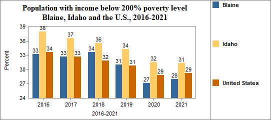 In Blaine, the percent of the population with incomes below 200% of the poverty level . . .